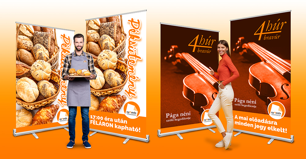 - A hagyományos roll-upok grafikái általában 200 cm magasságúak. Így például, ha több kiállító között jelenünk meg, akkor a teleszkópos roll-up 220 cm-es vagy akár 270 cm-es magassága már önmagában is figyelemfelkeltő.